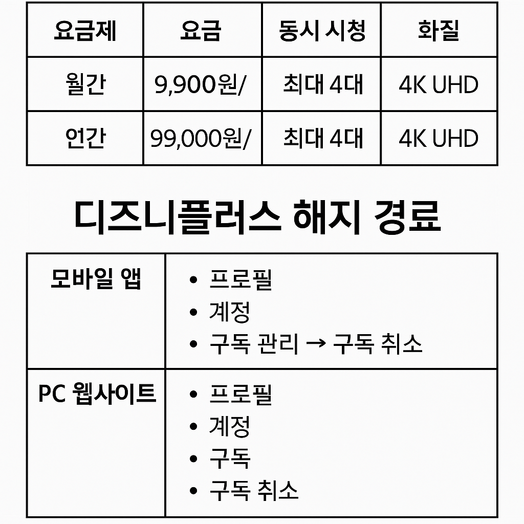 디즈니플러스는 간편하게 온라인으로 해지할 수 있습니다. 아래는 PC와 모바일에서 해지하는 방법입니다.